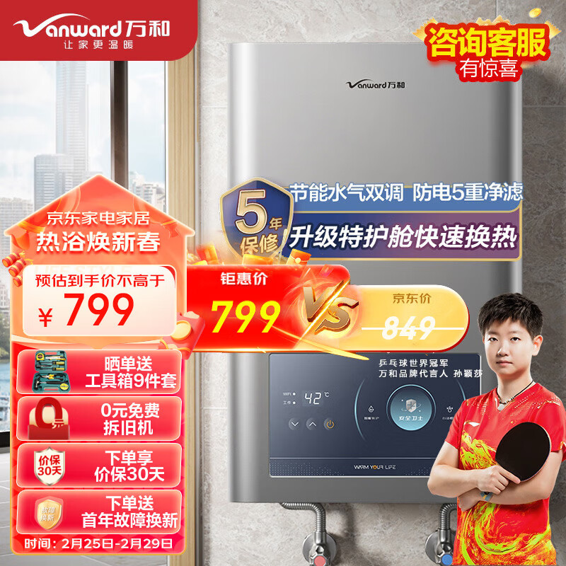 万和(Vanward)燃气热水器12升天然气水气双调恒温ECO节能5重净滤双防电保护防冻 E2D12【升级特护舱快速换热】价格:799.00元!