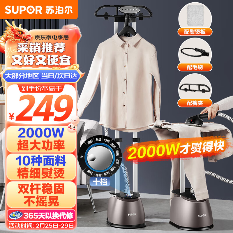 苏泊尔【10档熨烫】元宵节礼品挂烫机2000大功率家用手持蒸汽熨烫机杀菌除螨服装店双杆立式电熨斗GT33CP价格:249.00元!