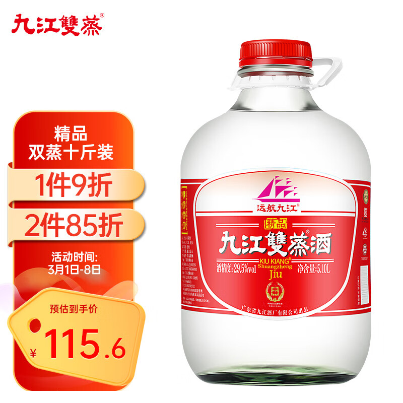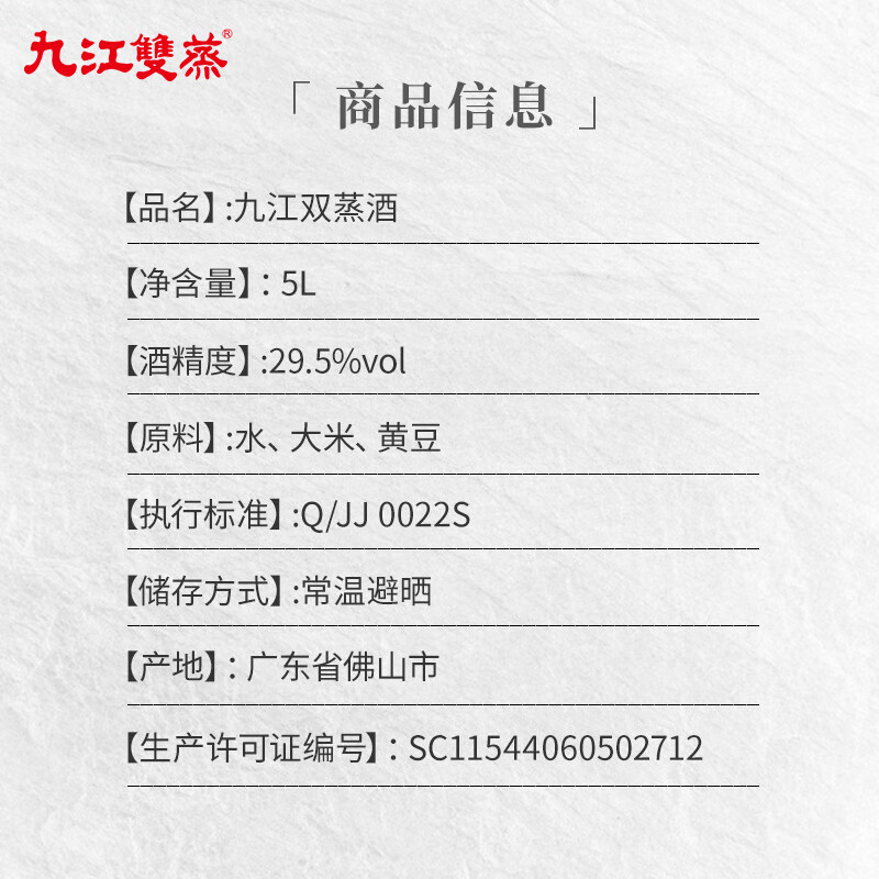 九江双蒸 豉香型白酒 29.5度浸泡酒5.1L 广东米酒浸泡青梅酒送礼白酒价格:136.00元!
