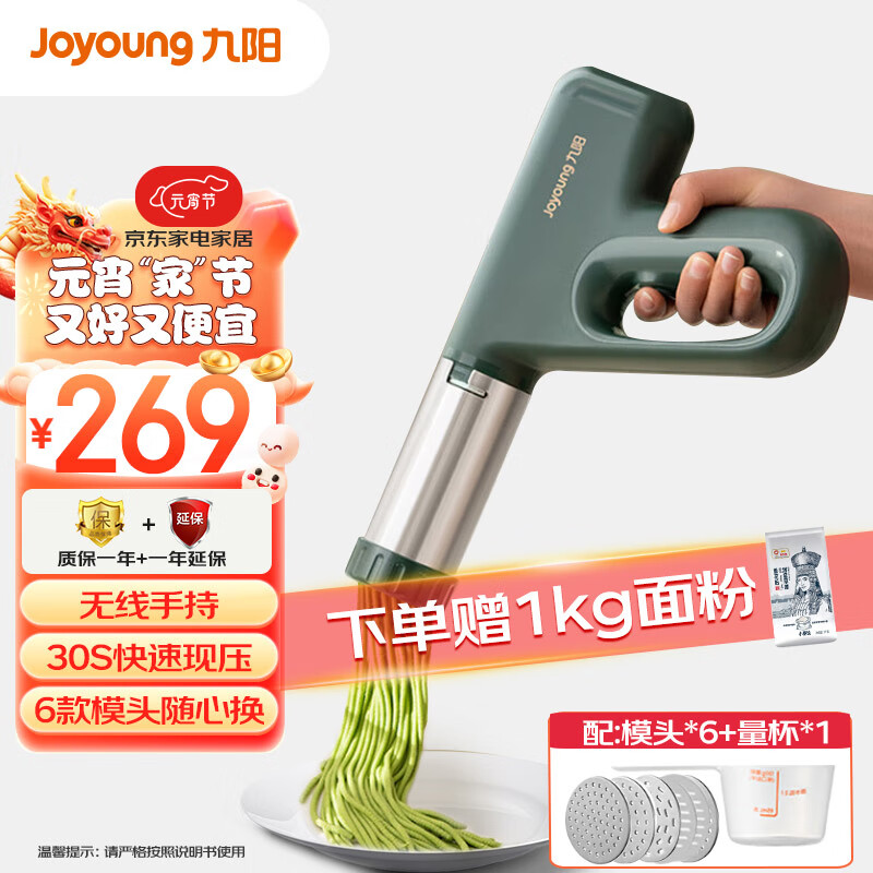九阳(Joyoung)面条机 家用电动小面枪 无线便携30秒快速出面自动不锈钢压面条机M2-MS186价格:254.00元!