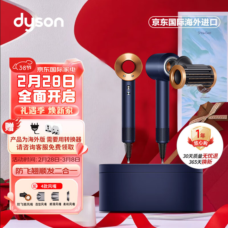 戴森(DYSON)HD15 新一代吹风机 Dyson电吹风 负离子 进口家用 220V电压 新年送礼 龙年 普鲁士蓝礼盒款 海外版价格:2390.00元!