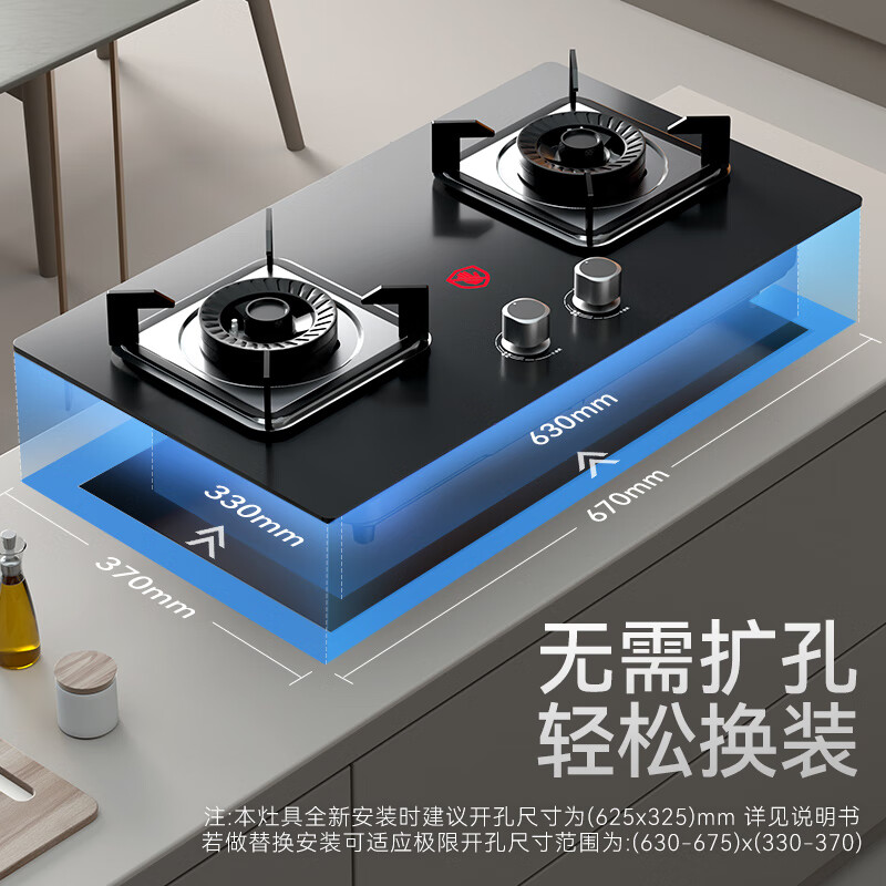 灶具开孔尺寸:640±20mm(灶台挖孔长度)