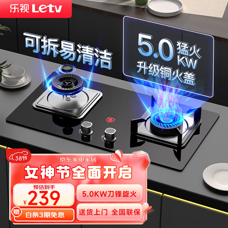 乐视(Letv)燃气灶液化气双灶具大火力台式嵌入式聚能猛火节能灶JZY-C103(液化气)价格:319.00元!