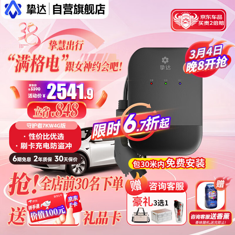 挚达7kw赛博充电桩4G版家用新能源电动汽车充电器枪适配特斯拉比亚迪问界m7送装一体30米内免费安装价格:3795.00元!
