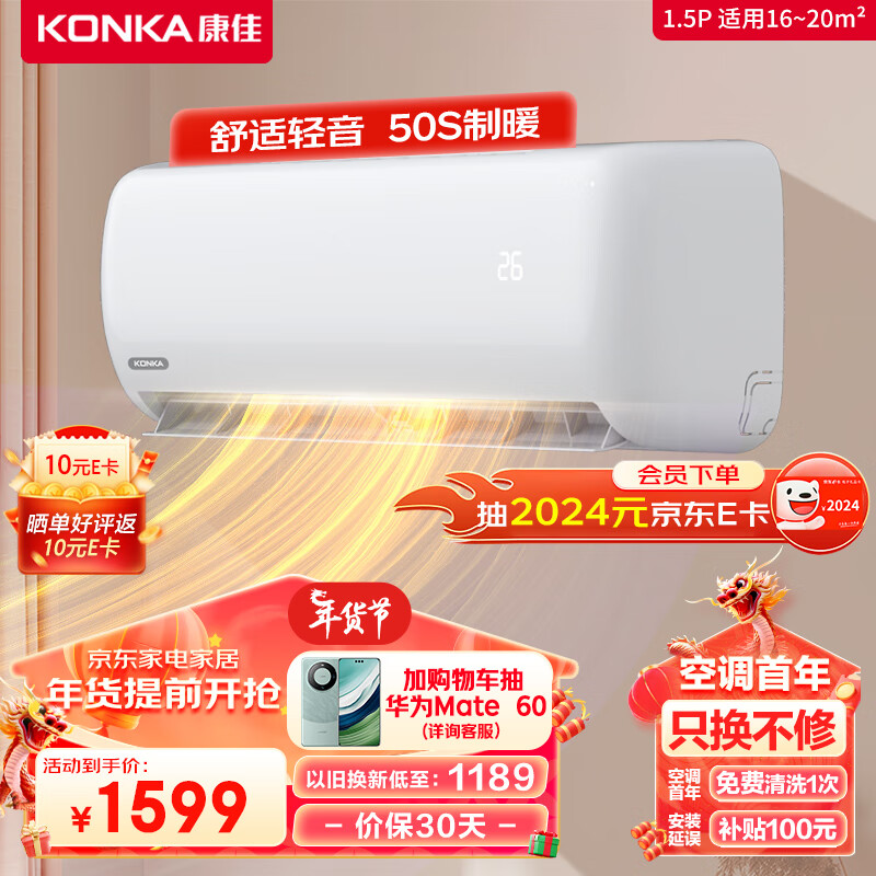 康佳(KONKA)1.5匹 新能效 快速冷暖 舒适节能 第四代自清洁 变频壁挂式空调挂机 以旧换新 KFR-35GW/HV3价格:1599.00元!