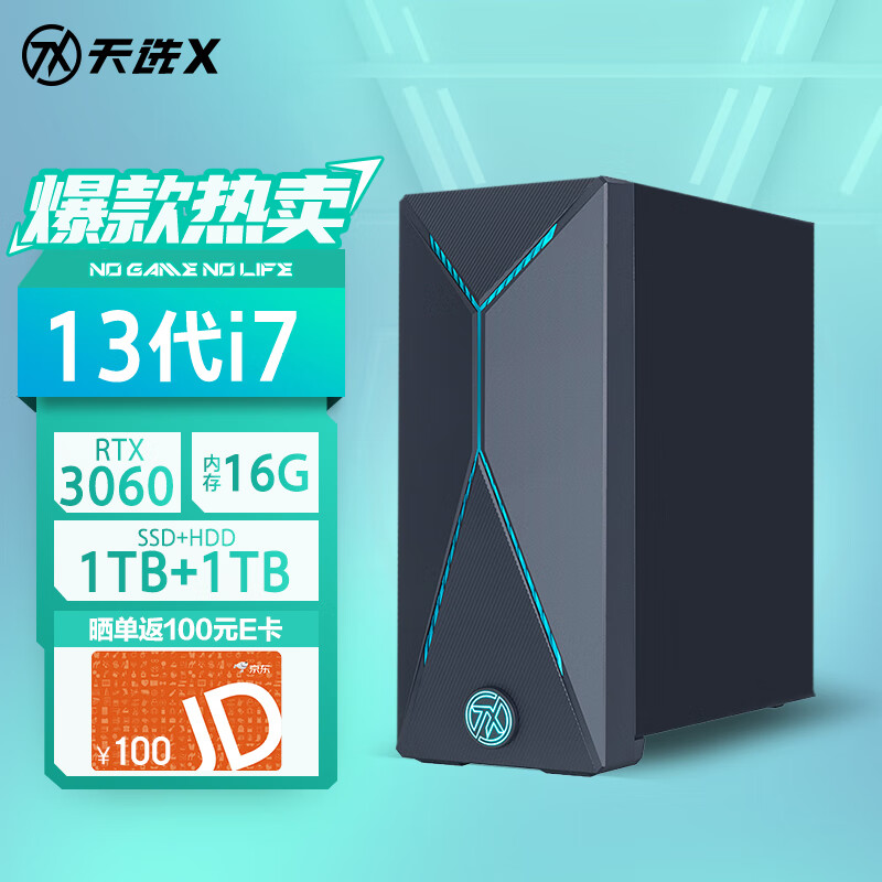 华硕天选X 游戏台式机电脑主机设计师电脑(13代i7-13700F RTX3060 12G显卡 16G 1T SSD+1T HDD)价格:7399.00元!