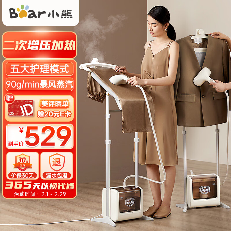 小熊(Bear)挂烫机家用双杆立式高效杀菌除螨蒸汽熨斗熨烫机手持挂烫机增压蒸汽烫衣服神器GTJ-B22E1价格:529.00元!