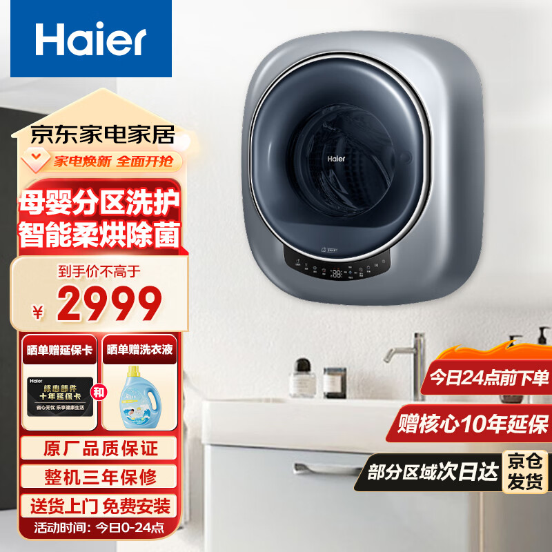 海尔(Haier)3KG壁挂滚筒洗衣机全自动多功能变频母婴幼儿内衣分区洗高温除菌螨迷你洗烘一体机XQGM30-HB711U1价格:2999.00元!