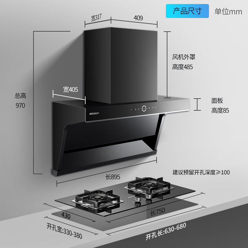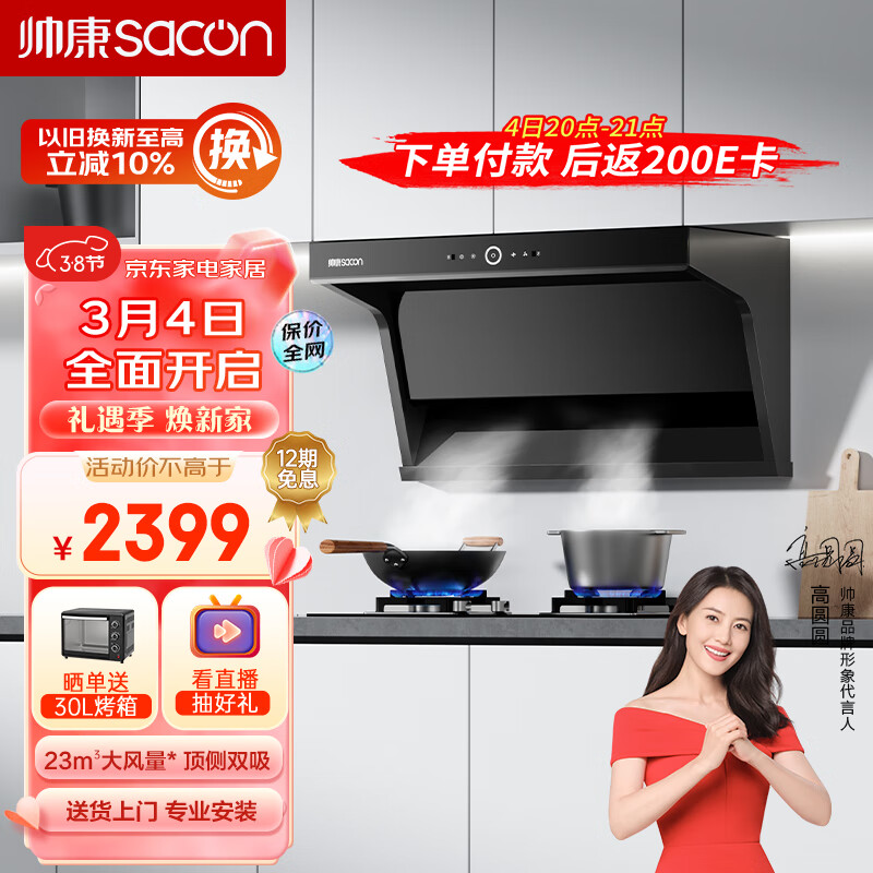 帅康(Sacon)抽油烟机顶侧双吸油烟机 抽油烟机燃气灶套装 家用23大风量烟灶套装7字机 Y8272+LB850B1液化气价格:2399.00元!