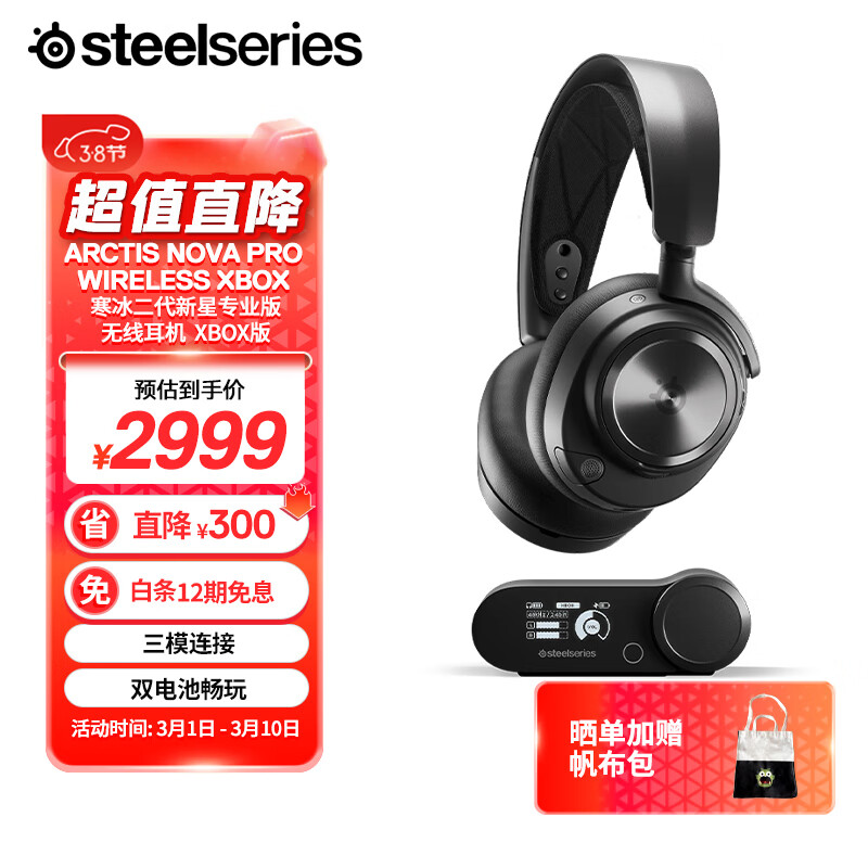 赛睿(SteelSeries)寒冰新星专业Arctis Nova Pro Wireless 兼容XBOX 无线电脑电竞头戴式游戏耳机降噪蓝牙三模连接价格:2999.00元!
