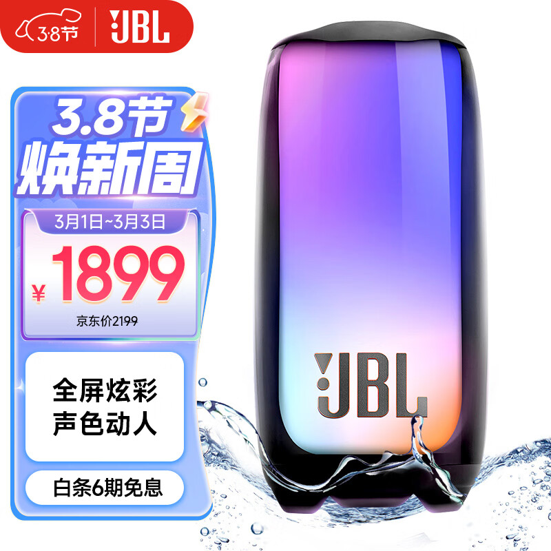 JBL PULSE5 音乐脉动五代 蓝牙音箱 音响 防水防尘 独立高音单元 家用电脑音响 开学开工礼物价格:2199.00元!