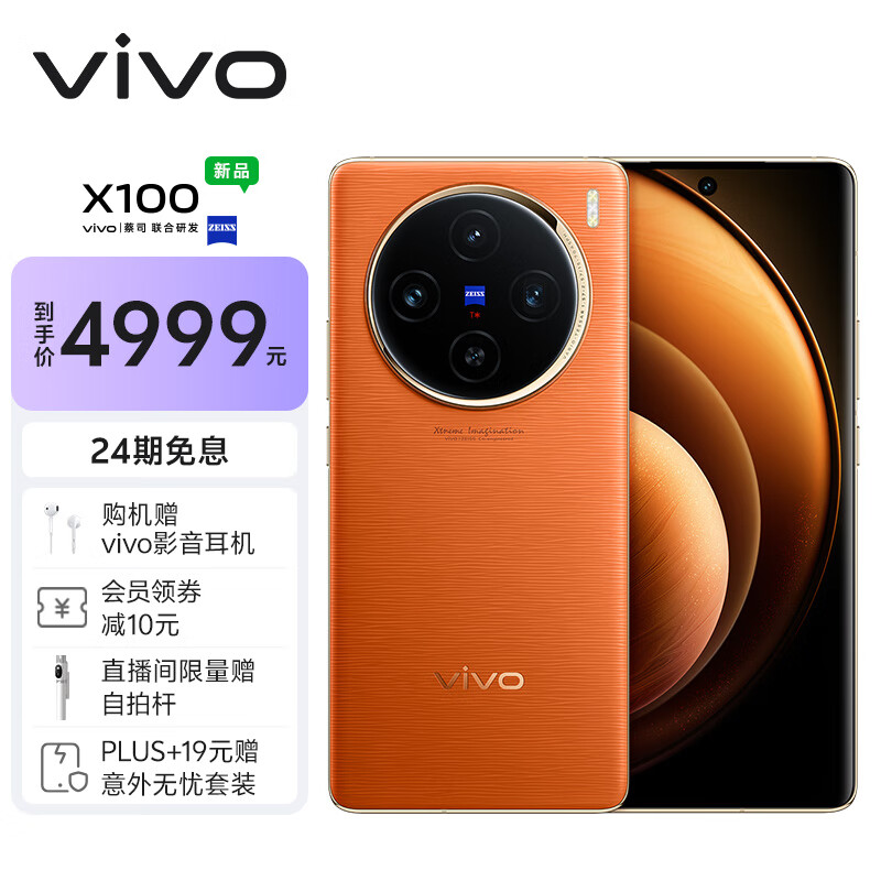 vivo X100 16GB+1TB 落日橙 蓝晶×天玑9300 5000mAh蓝海电池 蔡司超级长焦 120W双芯闪充 5G 拍照 手机价格:4999.00元!