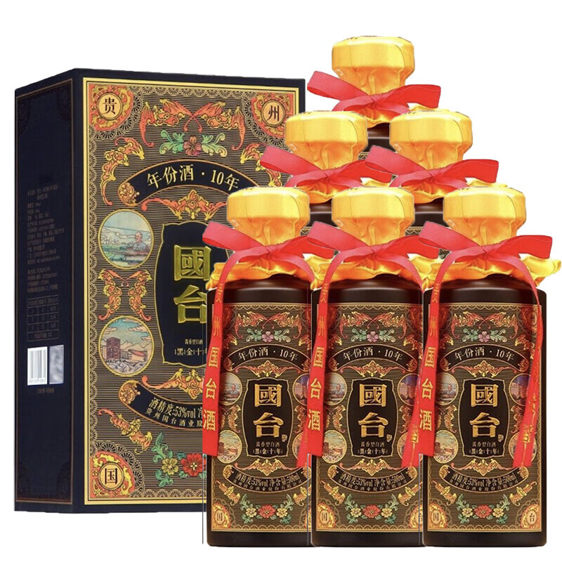国台 年份10年(黑金)酱香型白酒 53度 500ml*6瓶 整箱装价格:3976.00元!