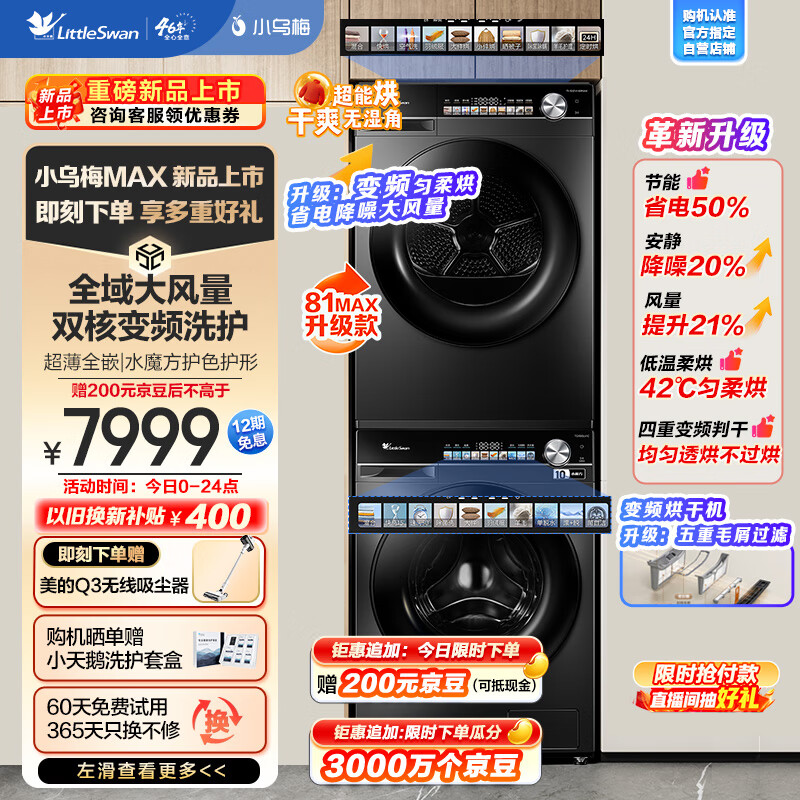 小天鹅(LittleSwan)洗烘套装10KG滚筒洗衣机全自动+变频热泵烘干机 超薄全嵌【小乌梅MAX轻享版】TG100LVIC+81MAX价格:8199.00元!