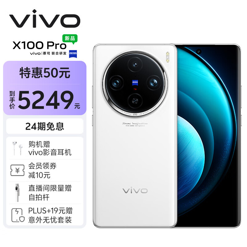 vivo X100 Pro 16GB+256GB 白月光 蔡司APO超级长焦 蓝晶×天玑9300 5400mAh蓝海电池 自研芯片V3 手机价格:5299.00元!