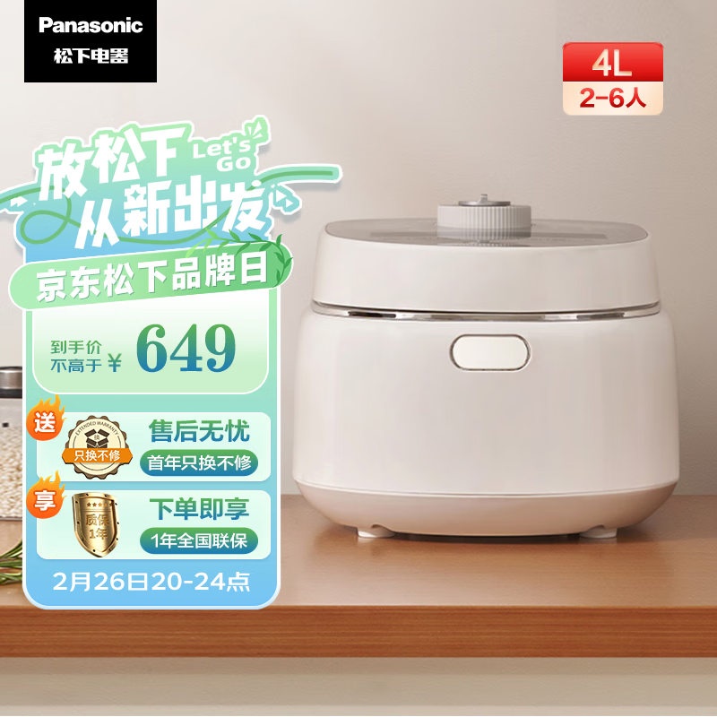 松下(Panasonic)饭墩墩电饭煲4L家用3-8人智能电饭锅 备长炭内胆涂层 智能预约定时快速煮饭 SR-DK151价格:555.00元!