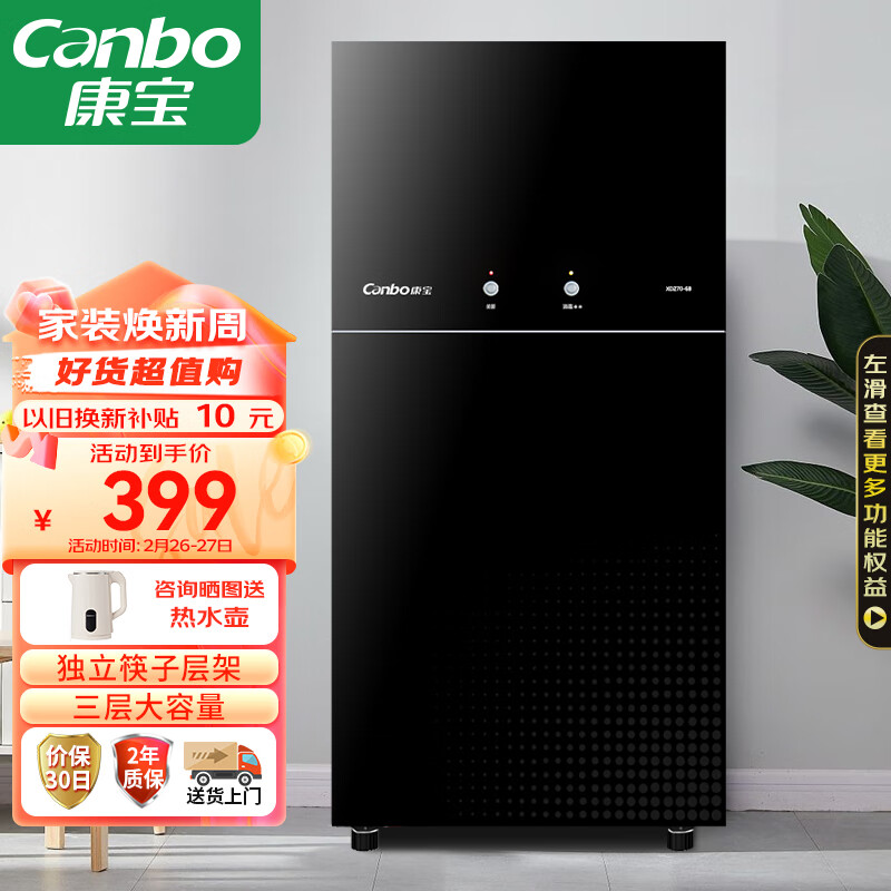 康宝(Canbo)消毒柜家用立式小型 二中温高温消毒烘干一体机 厨房柜碗碟筷餐具 双门收纳消毒碗柜 XDZ70-6B价格:519.00元!