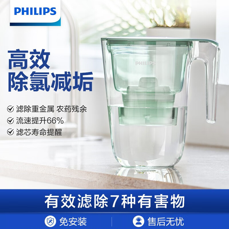 飞利浦(PHILIPS)全新升级净水壶 家用滤水壶 厨房自来水过滤净水器 AWP2813GNT价格:79.00元!