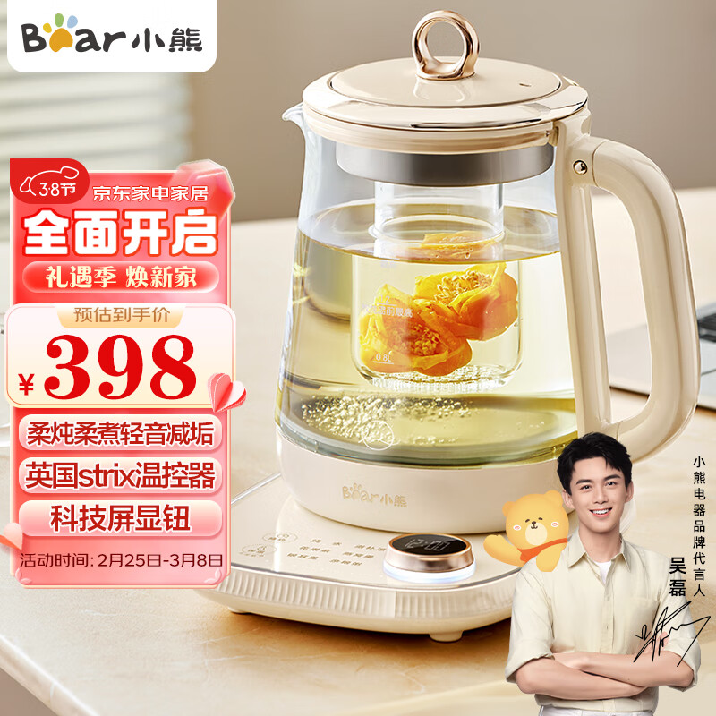小熊(Bear)小气泡养生壶 烧水壶 1.5升家用恒温水壶煮茶器煮茶壶 降噪轻音 带玻璃炖盅 YSH-F15E1 玻璃花茶壶价格:448.00元!