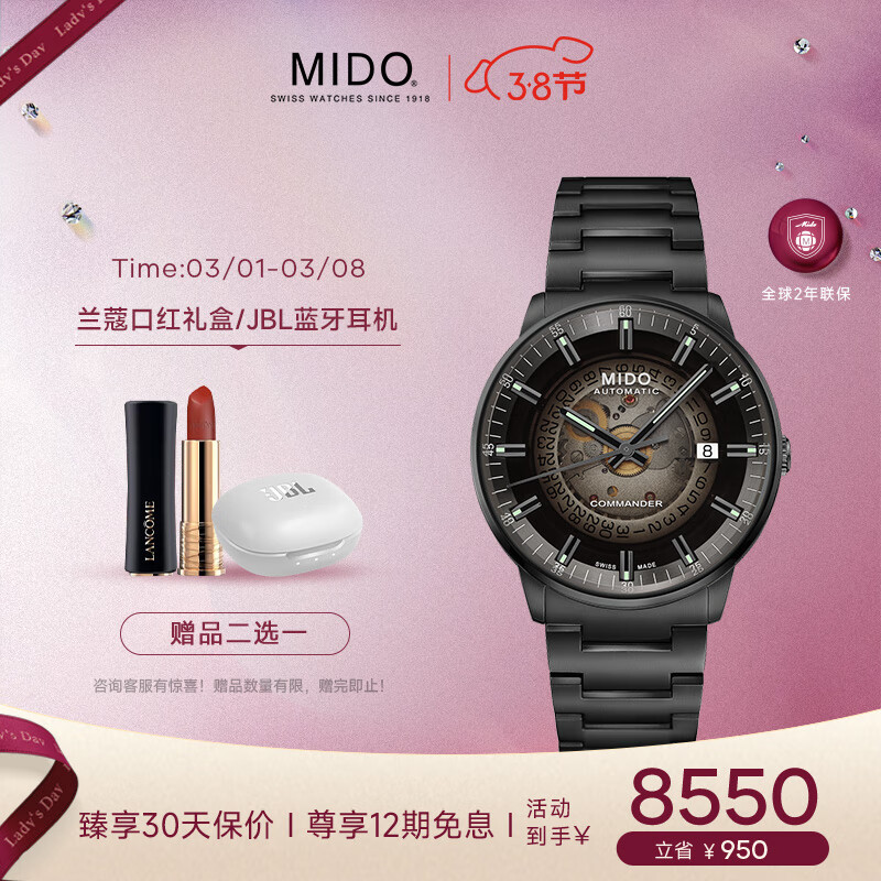 美度(MIDO)瑞士手表 指挥官系列 幻影款 自动机械商务钢带男表价格:8550.00元!