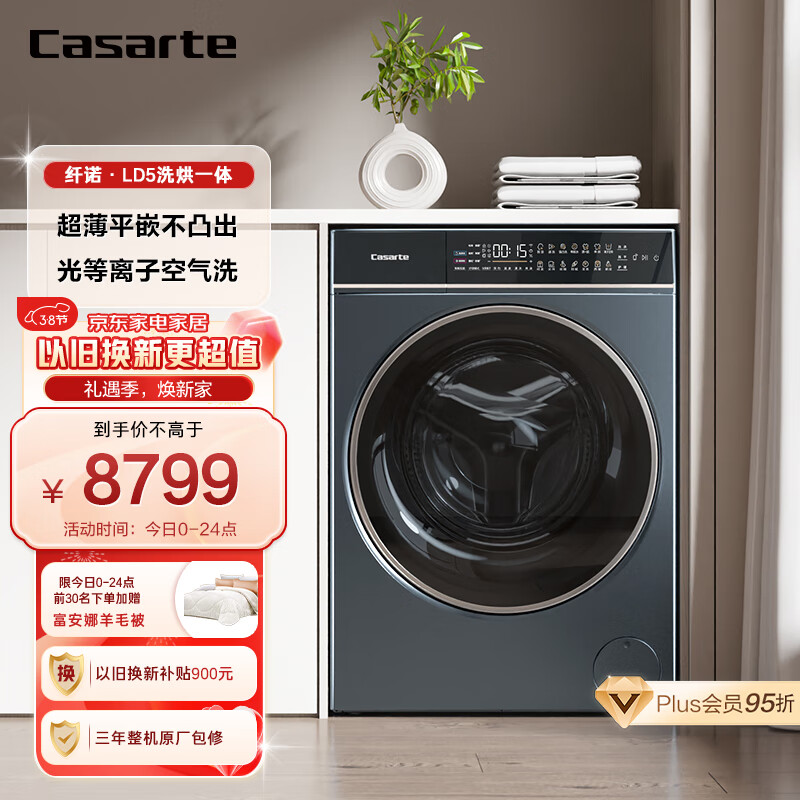卡萨帝(Casarte)滚筒洗衣机全自动 10公斤洗烘一体机 直驱变频 超薄大筒径 纯平嵌入光等离子 纤诺和美HD10LD5ELU1价格:8799.00元!