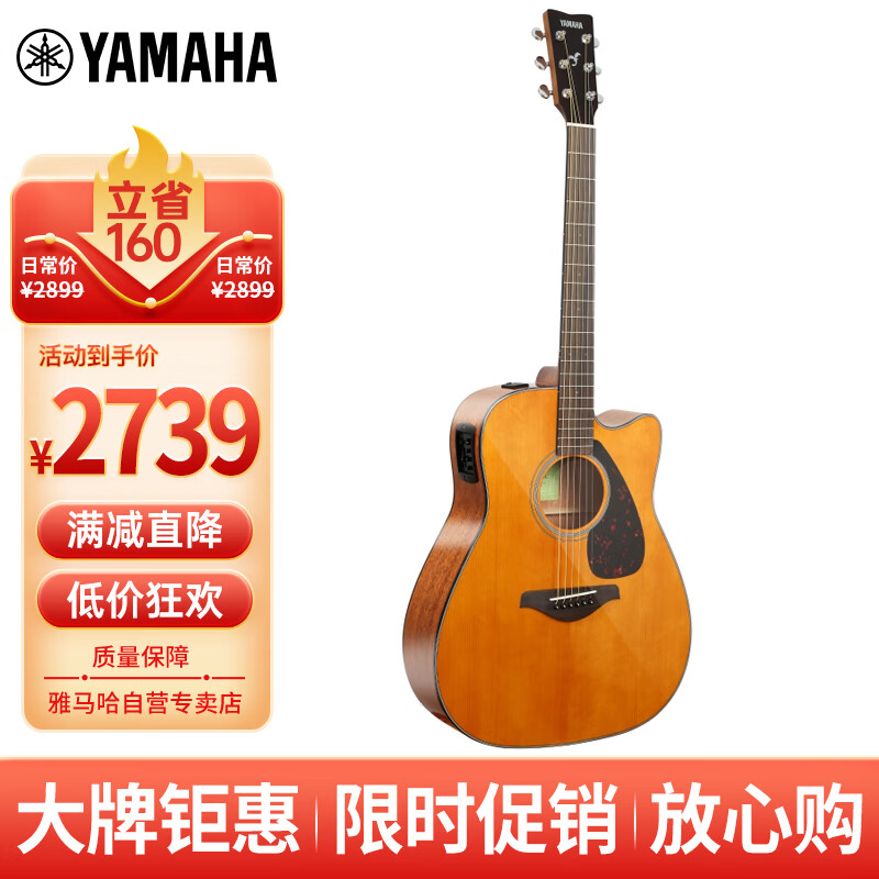 雅马哈(YAMAHA)FGX800C VN实木单板 初学者电箱民谣吉他缺角吉它41英寸复古色价格:2899.00元!