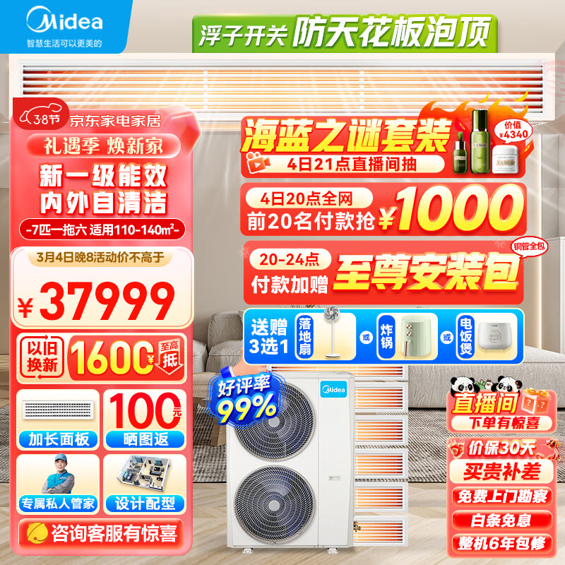 美的(Midea)中央空调一拖六风管机7匹星光多联机新一级能效全直流变频冷暖清洁嵌入式MDS-H180W-A(1)Ⅲ价格:38099.00元!
