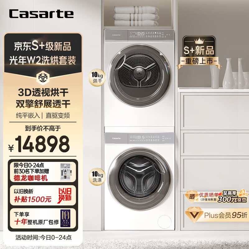 卡萨帝(Casarte)光年W2洗烘套装 直驱滚筒洗衣机全自动+双擎热泵烘干机 3D透视烘干纯平嵌【L7】10FW2EU1+10W2ELU1价格:14898.00元!