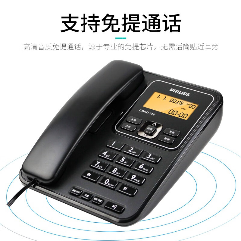 飞利浦(PHILIPS)电话机座机 固定电话 办公家用 屏幕橙色背光 一键转接 CORD148黑色 家电价格:129.00元!