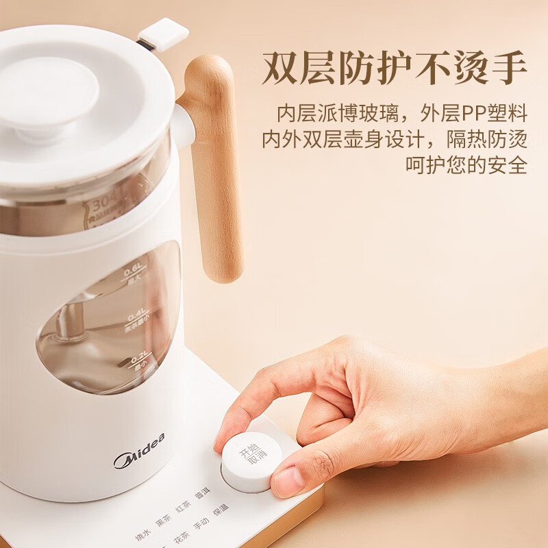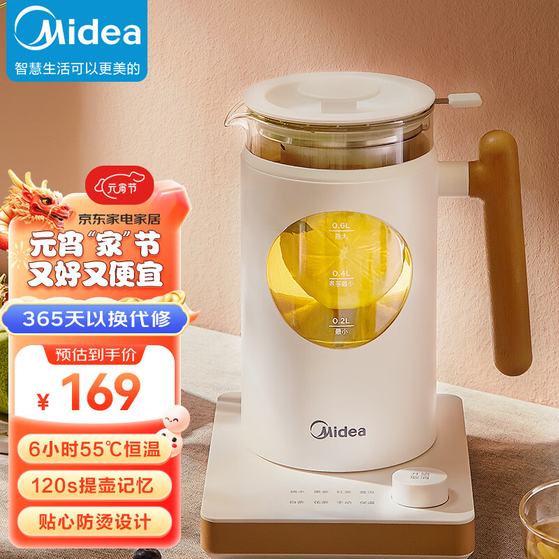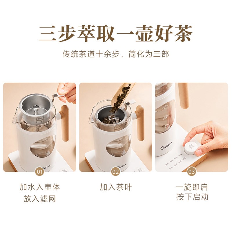 美的(Midea)养生壶 净醇煮茶器煮茶壶 智能蒸汽喷淋式 蒸茶器 烧水壶提壶记忆煮茶壶茶具YS06P501价格:157.00元!