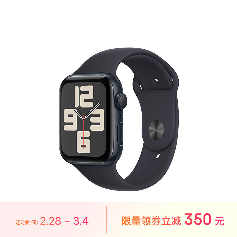 Apple/苹果 Watch SE 2023款智能手表GPS款44毫米午夜色铝金属表壳午夜色运动型表带S/M MRE73CH/A价格:2149.00元!