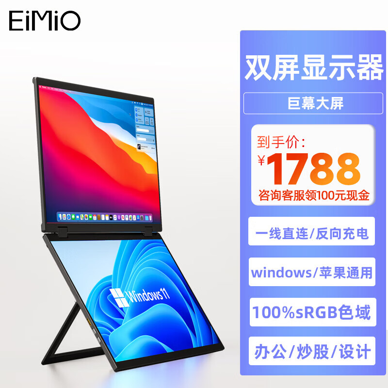 Eimio 可折叠双屏便携显示器 扩展三屏笔记本副屏电脑扩展屏幕15.6英寸 办公炒股游戏大屏 E11标准版价格:1788.00元!