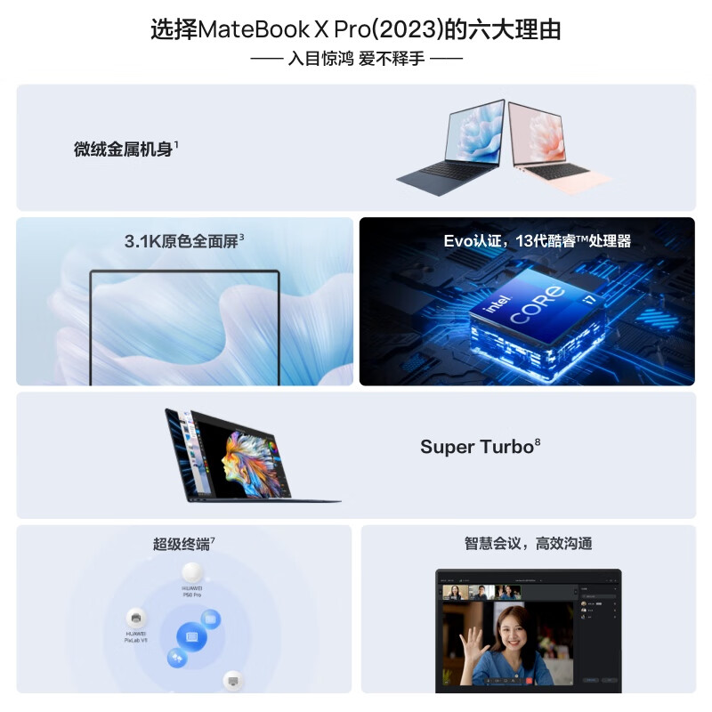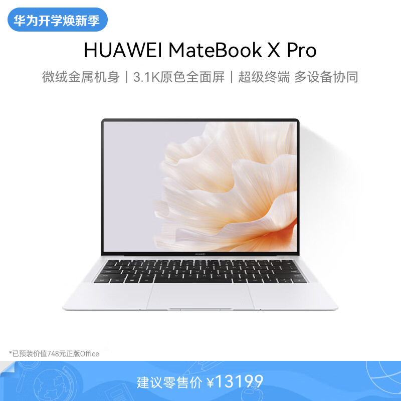 华为MateBook X Pro微绒典藏版笔记本电脑 13代酷睿处理器/3.1K原色触控屏/商务办公本 i7 32G 2T 锦白价格:13199.00元!