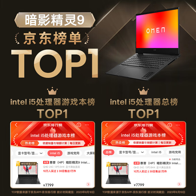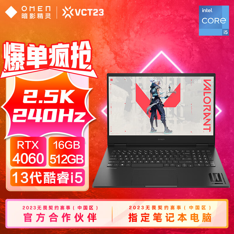 惠普(HP)暗影精灵9 intel 16.1英寸游戏本 笔记本电脑(13代酷睿i5-13500HX RTX4060 16G 512G 2.5K 240Hz)价格:8199.00元!