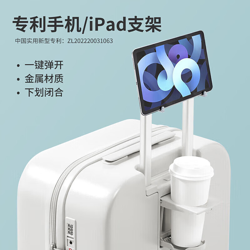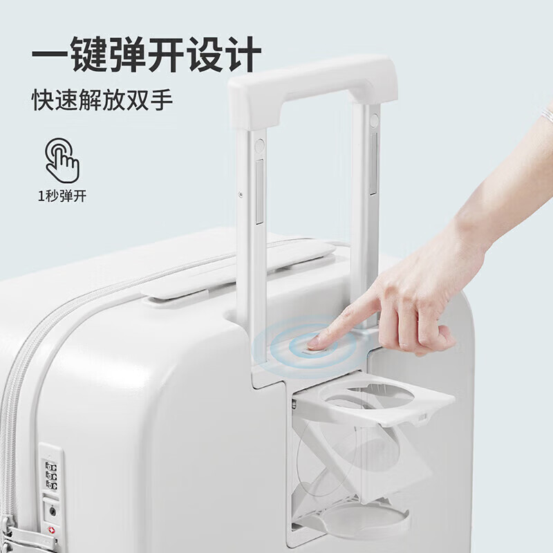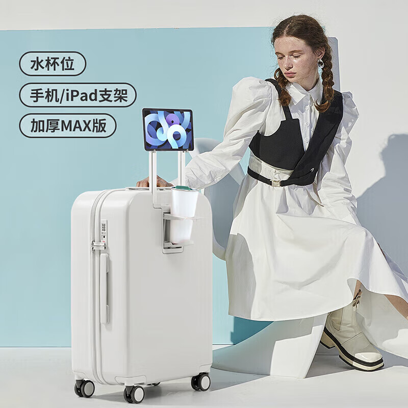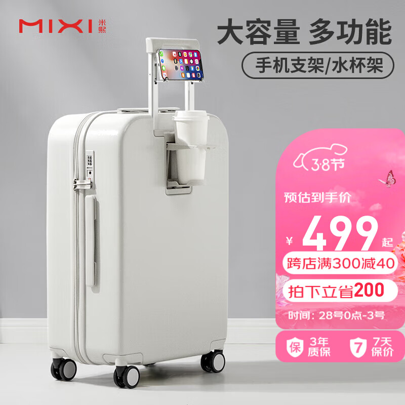 米熙多功能拉杆箱子行李箱大容量男高颜值旅行箱包女密码箱26英寸烟白价格:699.00元!