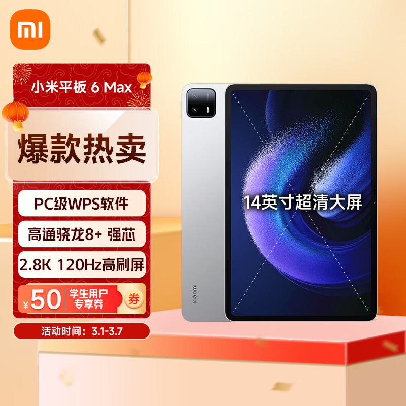 小米平板6 MAX14英寸xiaomiPad 高通骁龙8+ PC级WPS 2.8K 120Hz高刷 8+256GB大屏办公平板电脑银色价格:3799.00元!