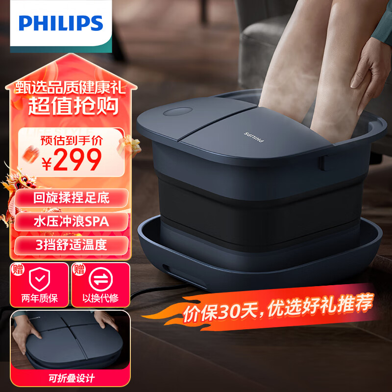 飞利浦(PHILIPS)泡脚桶足浴盆折叠加热控温全自动按摩恒温泡小腿 电动洗脚盆足疗盆礼品送长辈5103/04F 深蓝色价格:299.00元!