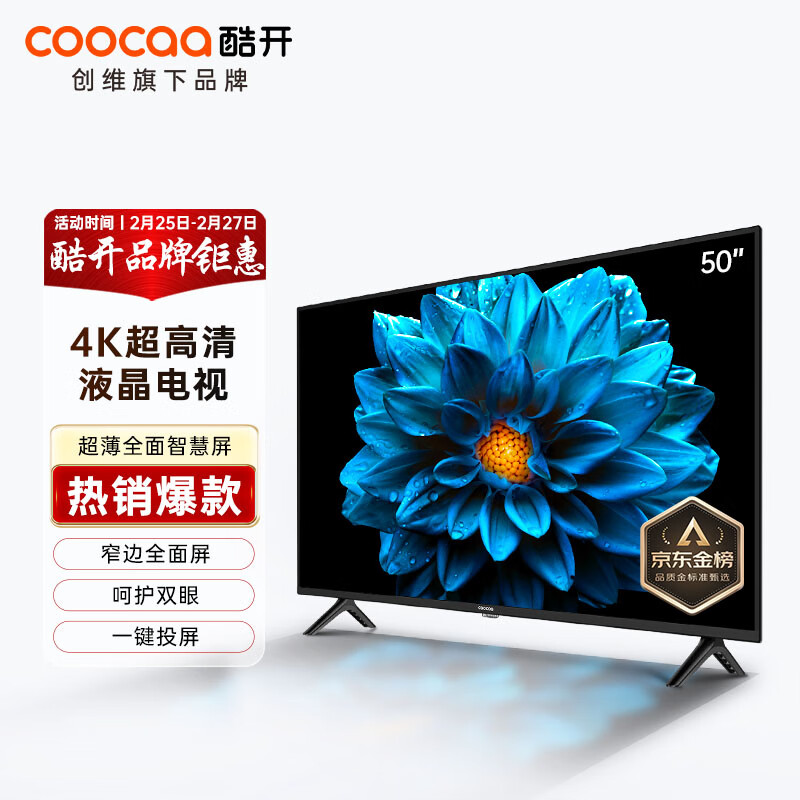 酷开创维 J3 50英寸电视4K超高清智慧屏超薄液晶电视屏投屏游戏智能语音平板电视机55以旧换新50J3价格:1499.00元!