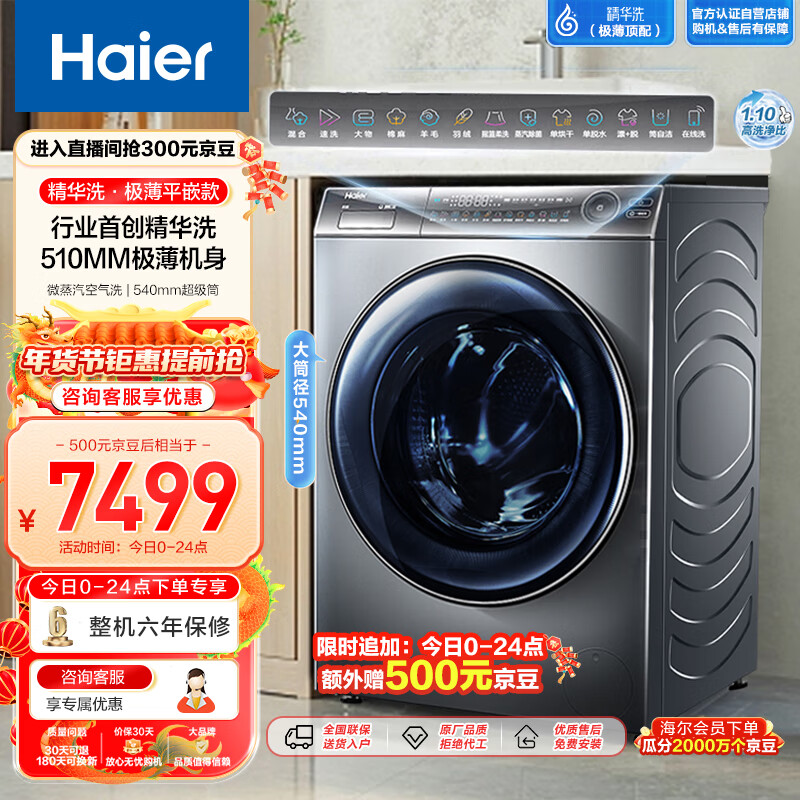 海尔(Haier)精华洗洗衣机 10公斤洗烘一体机 超薄540超大筒径 直驱变频 滚筒洗衣机全自动 XQG100-HBD14396LU1价格:7999.00元!