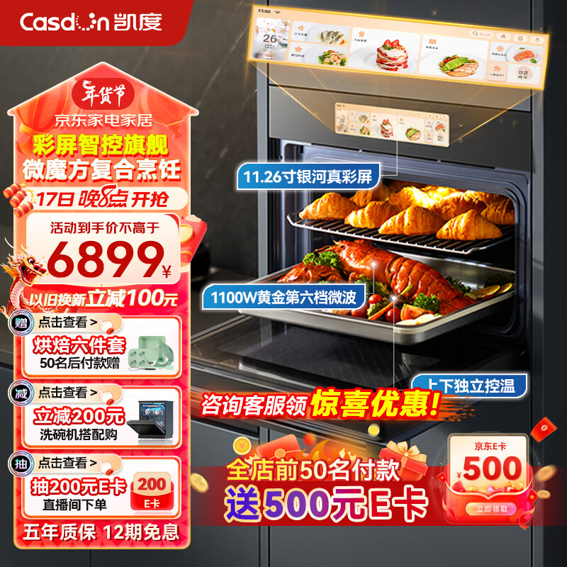 凯度(CASDON)52L 嵌入式 双热风 微蒸烤炸炖5合1 蒸烤箱一体机 彩屏WIFI智控 变频微波SR52FW1-ZRPro价格:6899.00元!