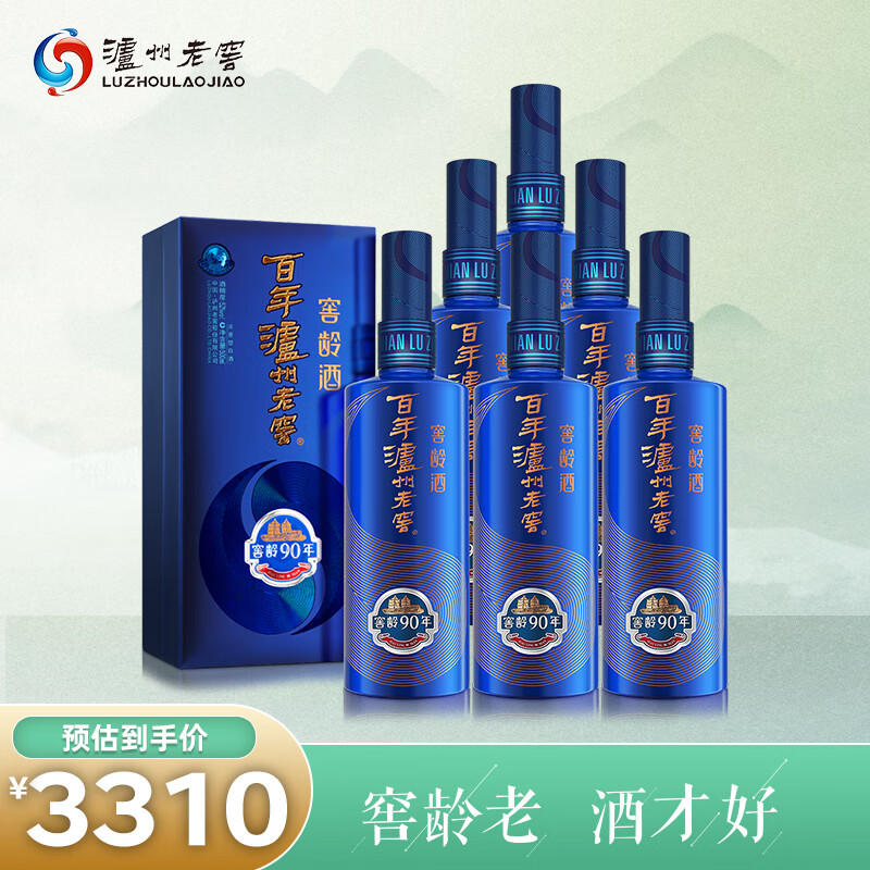 泸州老窖 窖龄90年 浓香型白酒 52度500ml 6瓶 整箱装(内含礼品袋)价格:3310.00元!