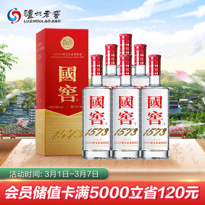 泸州老窖 国窖1573 浓香型白酒 38度 500ml*6瓶 整箱装(新老包装随机发货)价格:4600.00元!