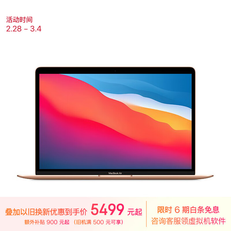 Apple/苹果2020款MacBookAir13.3英寸M1(8+7核) 8G256G金色轻薄学习办公笔记本电脑MGND3CH/A价格:7999.00元!