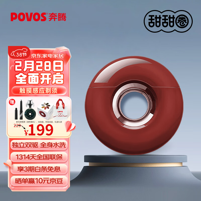 奔腾(POVOS)甜甜圈电动剃须刀 小巧便携刮胡须刀须刨智能T000浓情棕 生日纪念日礼物送男友送老公送男生价格:219.00元!