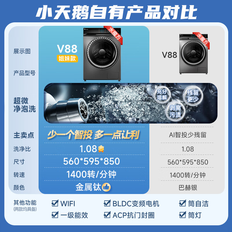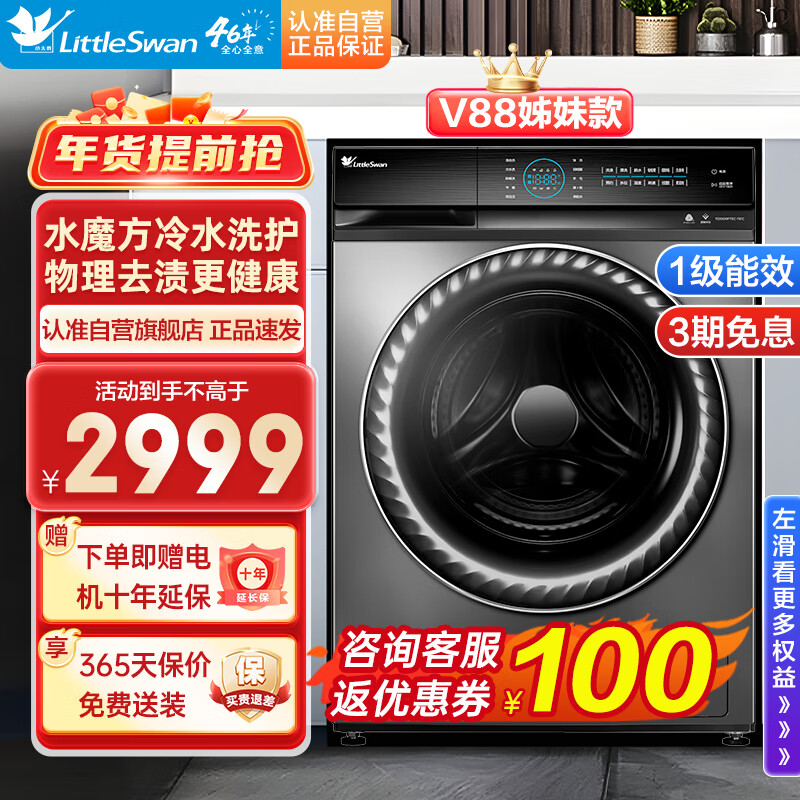 小天鹅(LittleSwan)滚筒洗衣机全自动 水魔方 10公斤大容量 物理去渍超微净泡 超薄机身 V88姊妹款 TG100RFTEC-T61C价格:2799.00元!