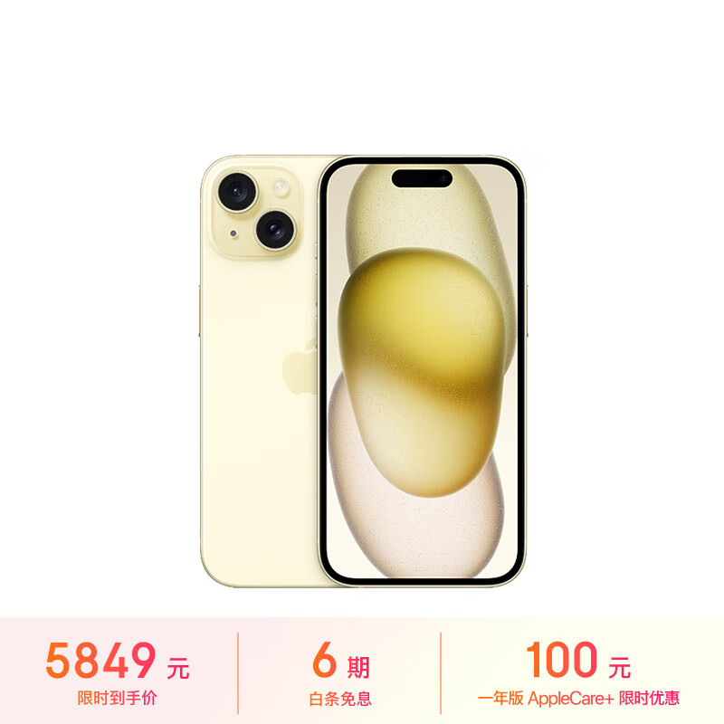 Apple/苹果 iPhone 15 (A3092) 256GB 黄色 支持移动联通电信5G 双卡双待手机价格:6199.00元!