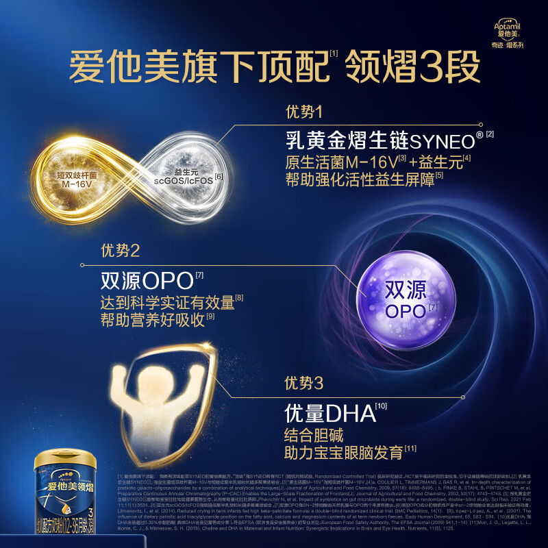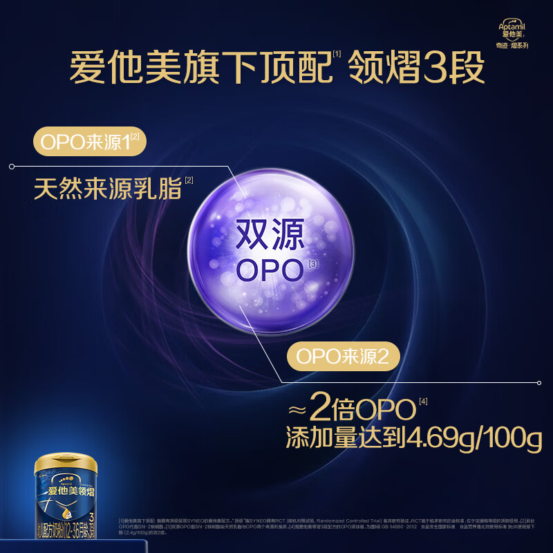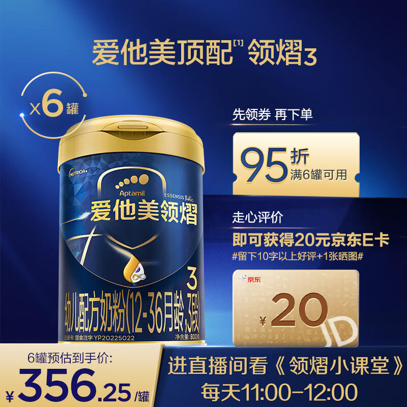 爱他美(Aptamil)领熠幼儿配方奶粉(12—36月龄 3段) 800g*6罐 整箱装价格:2250.00元!