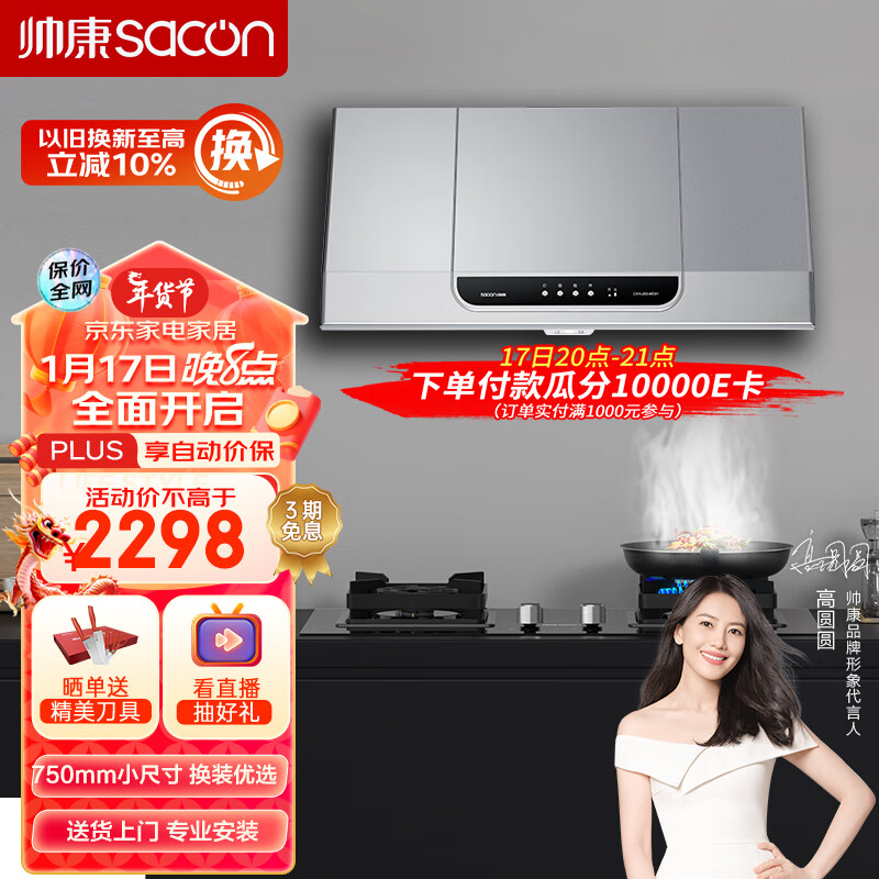 帅康(Sacon)抽油烟机烟灶套装家用大风量中式抽油烟机燃气灶油烟机灶具小尺寸换装优选MD01+61C天然气价格:2298.00元!