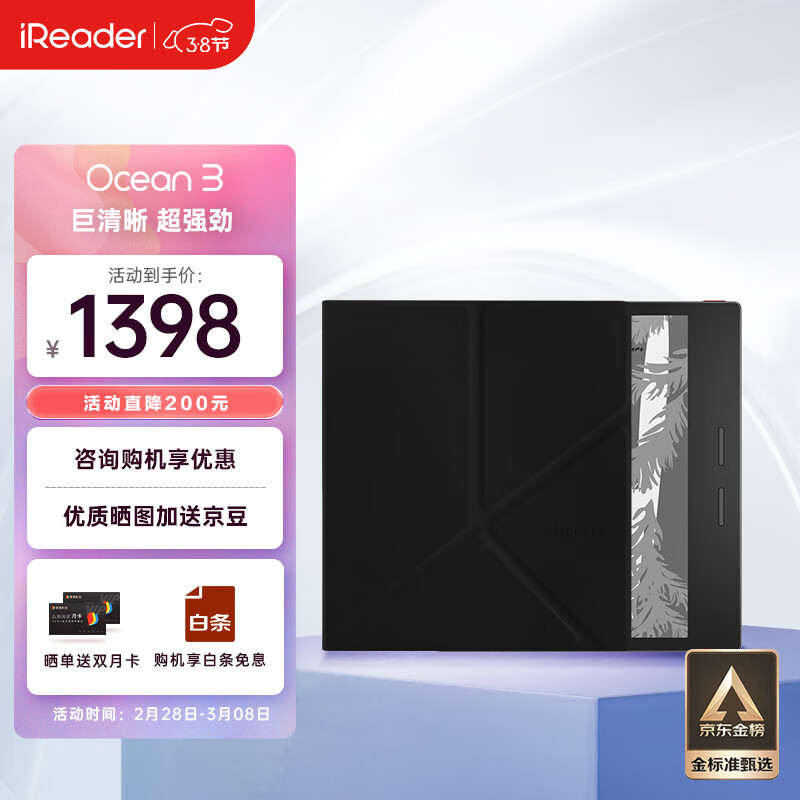 掌阅iReader Ocean3 7英寸电子书阅读器墨水屏电纸书电子纸便携阅读看书学习32GB儒雅黑支架保护套套装价格:1398.00元!