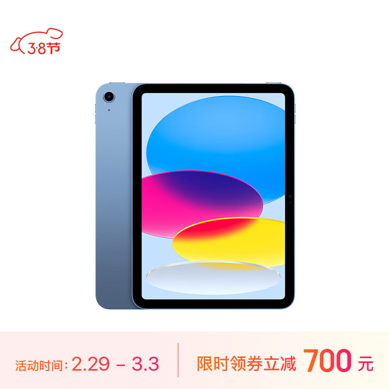 Apple/苹果 iPad(第 10 代)10.9英寸平板电脑 2022年款(256GB WLAN版/学习办公娱乐/MPQ93CH/A)蓝色价格:4799.00元!